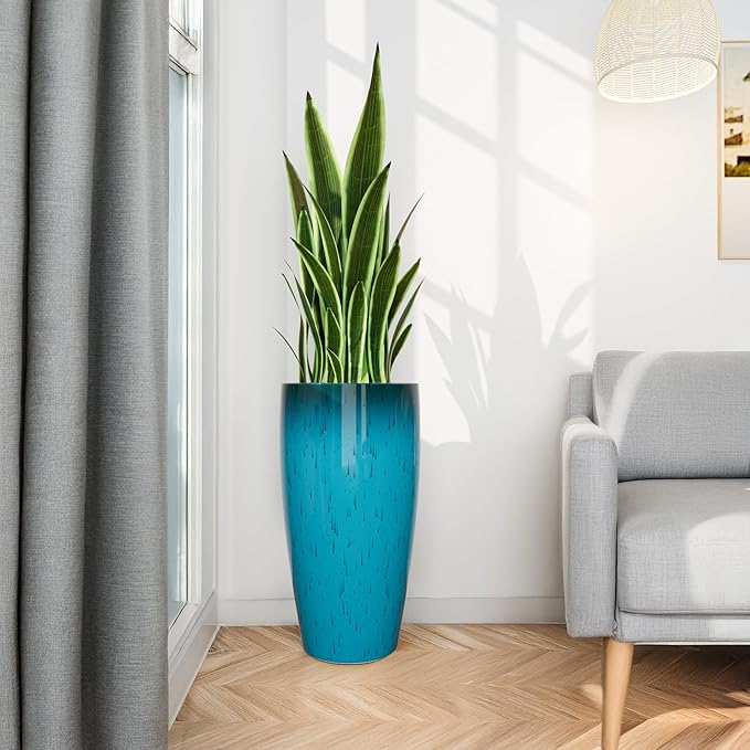 - DURABLE MATERIAL: Tall planter is made of plastic and stone composite, with beautiful texture and not heavy body. Thickened inner-wall makes it crack resistant, scratch resistant, UV resistant, colorfast all day long.