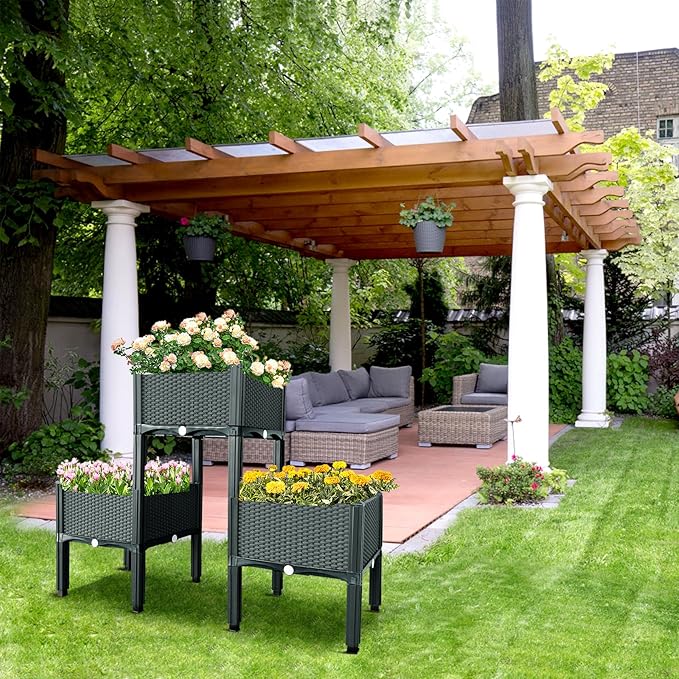 - ✔PREMIUM QUALITY: Made of reinforced PP material, the elevated planters are anti-rust, sturdy& durable, safe for growing fresh organic food. A handy tool kit is included for easy gardening.