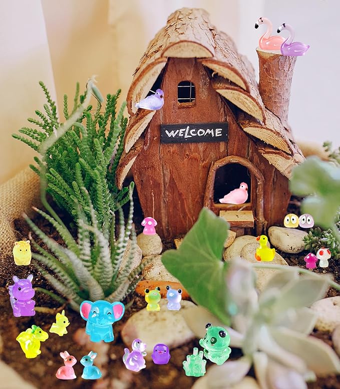 - Magical Glow-in-the-Dark Feature: These tiny resin animals absorb light during the day and emit a soft, glowing effect at night, adding a magical touch to your gardens, terrariums, or home décor