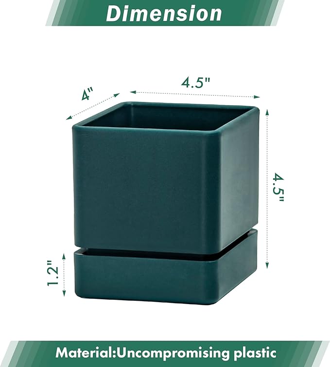 4 Inch Herb Planter Pot, Plastic Planter with Drainage Holes and Saucer, Modern Decorative Gardening Pot for Indoor Plants, Flowers, Herbs, Succulents, Green, Set of 4, 76-Y-C-4