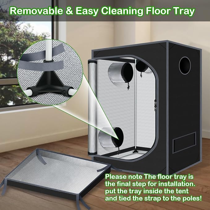 - Tool-Free Fast Installation--- Our grow tents are easy and fast to install without tools even if you've never done something like this before. The package includes the user-friendly and professional instruction well for easy set up.