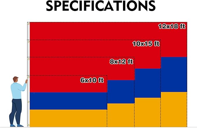 Armenia Extra Large Flag 12x18FT Giant Armenian National Polyester Flag With 5 Grommets For Patriotic Armenian Themed Festival Events Party Decoration(Armenia, 12x18FT)