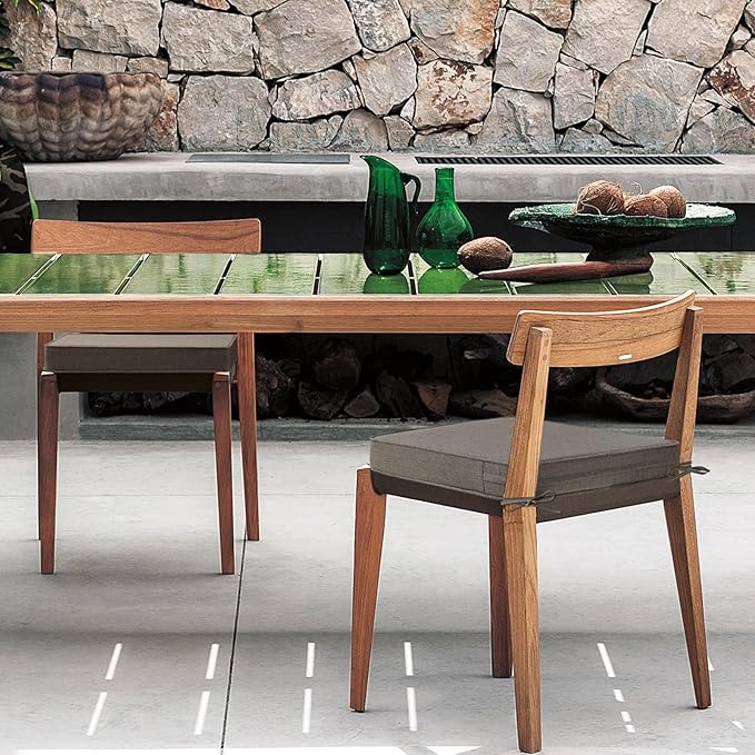 Sunbrella Square Corner Seat Cushions, 19" x 19" x 3", Set of 4, Indoor Outdoor Water Repellent Universal Chair Pads with Ties for Patio Furniture, Garden Dining Chairs, Cast Shale