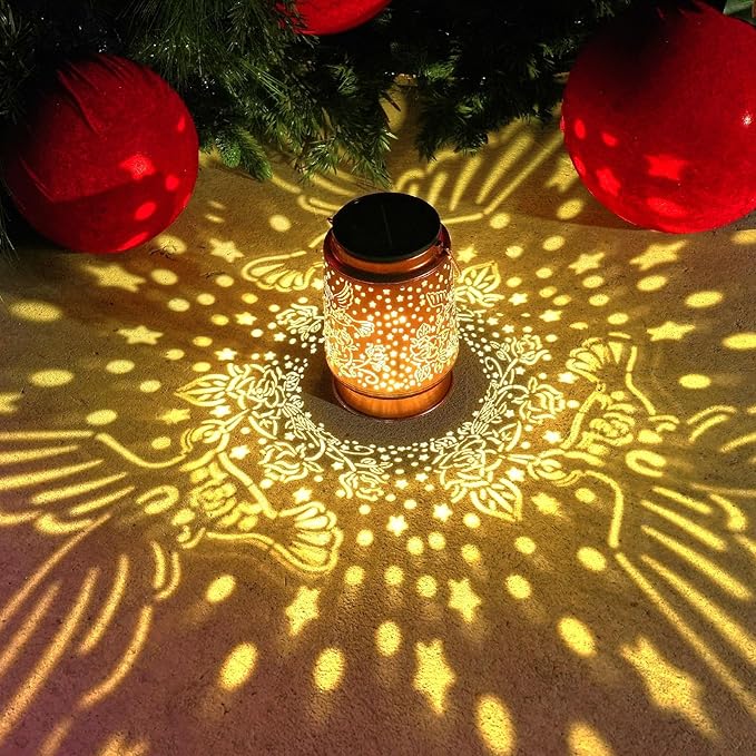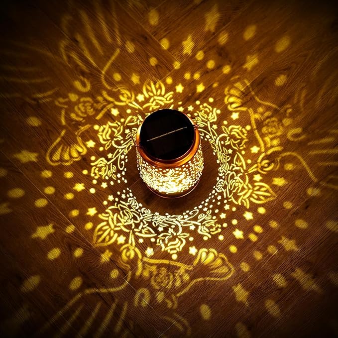 - [Enhanced Outdoor Experience]: By projecting pretty patterns, The solar lantern for outside not only a garden decor which adds beauty to outdoor spaces, but also brings a cozy lighting experience to people at night. Whether it's family gatherings or parties,it allows people to enjoy a more wonderful outdoor life.