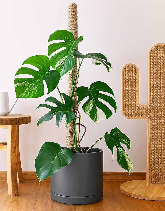 - Planter pot with drainage hole, mesh drainage net and protective scratch pad included.