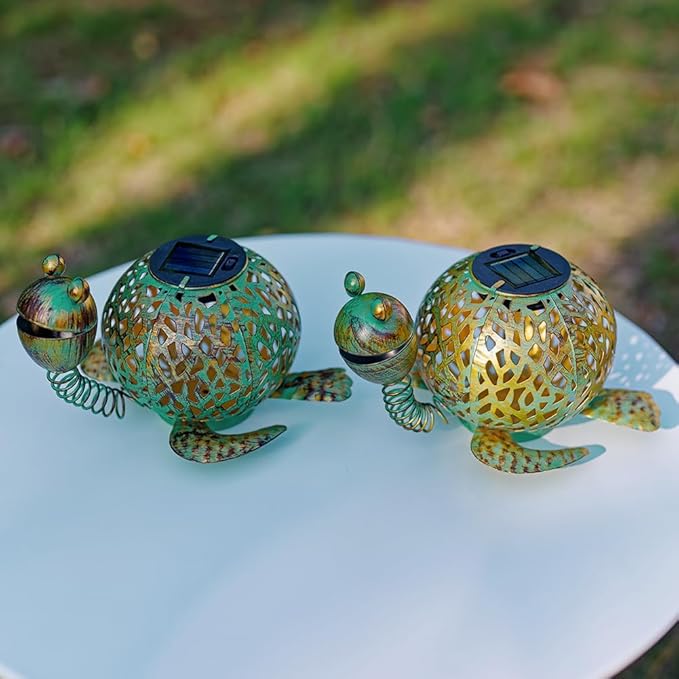- Package Included: 2 x outdoor solar lantern. Due to the handmade nature of our products, the placement of each turtle's head and limbs may vary slightly. The outdoor lanterns for patio you get will be irreplaceable