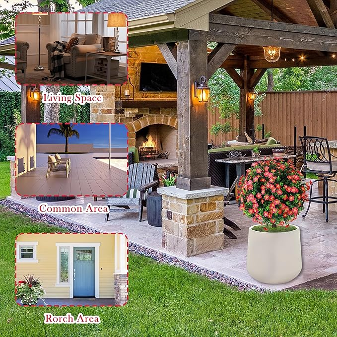 - 【High Quality & Appearance Design】Constructed from premium UV-resistant polyethylene material, this synthetic plant boasts lush foliage with natural colors. The solid trunk with lifelike texture that resists fading and damage, allowing the plant to maintain its vivid appearance even in harsh outdoor conditions.