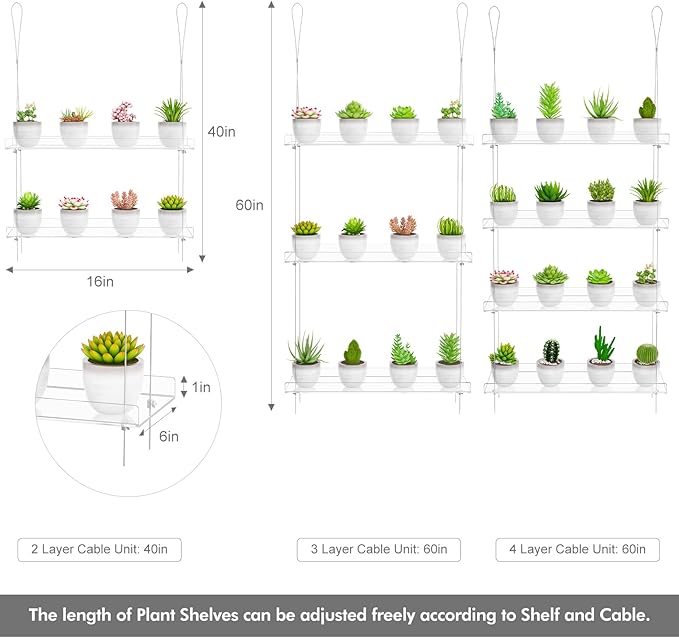 - Adjust Height Freely: Size:16’’Long, 6" Wide, 1" Deep.2 Layer Cable is 40’’. 3 Layer Cable is 60’’.4 Layer Cable is 60’’.easily adjust the spacing by the turnbuckles to obtain the best fit for windows and plant growth.