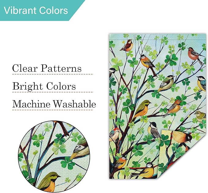 - For St. Patrick's Day Home Garden Decor: Adorned with charming shamrocks and birds pattern, our garden flag adds a festive touch to your outdoor space. It’s perfect for welcoming guests and enhancing your St. Patrick's Day celebrations.