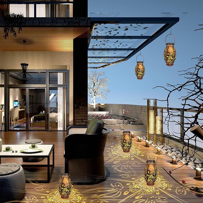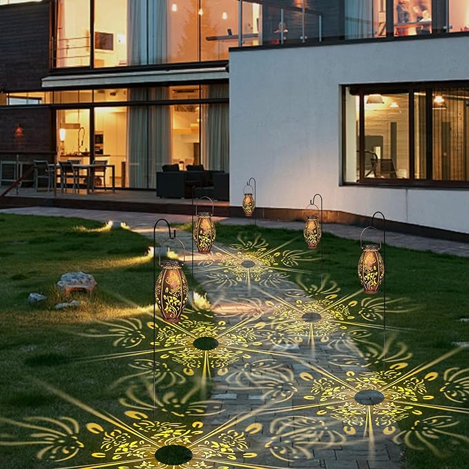 - ✔️【Upgraded Solar Outdoor Lights】- With Upgraded solar pannel, more bright and longer working hours. These solar garden lanterns can project a unique and beautiful pattern with 10 lumens of warm light. In a dim environment, these solar lights can illuminate a corner of the garden and create a beautiful and warm atmosphere.