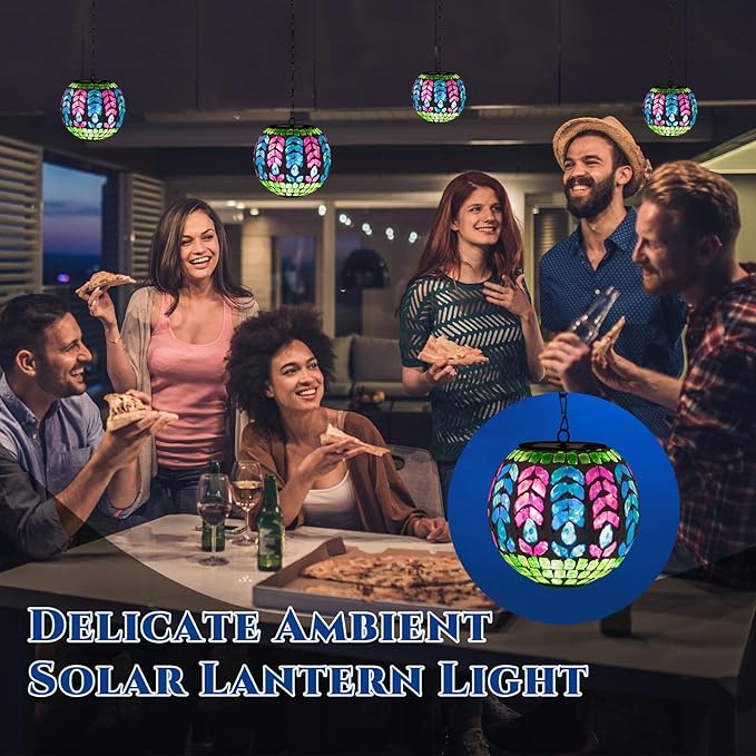 - 【Mosaic Design Decoration】Each solar outdoor lantern is meticulously crafted with high-quality mosaic glass gazing ball, featuring intricate patterns that cast beautiful, warm projections. The sturdy metal chain ensures durability, making these mosaic solar hanging lanterns perfect for enhancing the ambiance of any space.