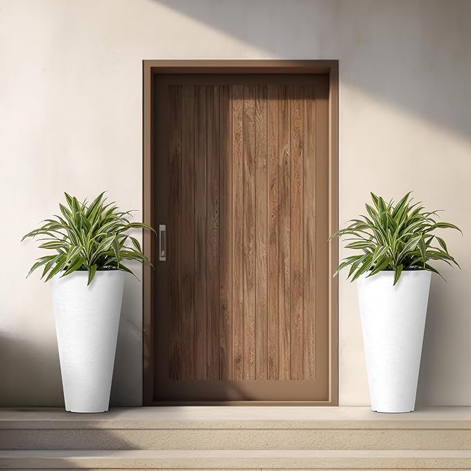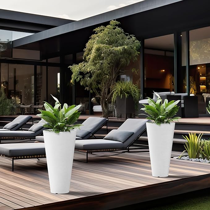 - Minimalist Chic - Elevate your space with these tall and wide planters, embodying sleek lines and a contemporary White finish—a defining trend in modern landscape design. The textured surface introduces an artistic touch to your garden, patio, office, living room, or front door area.