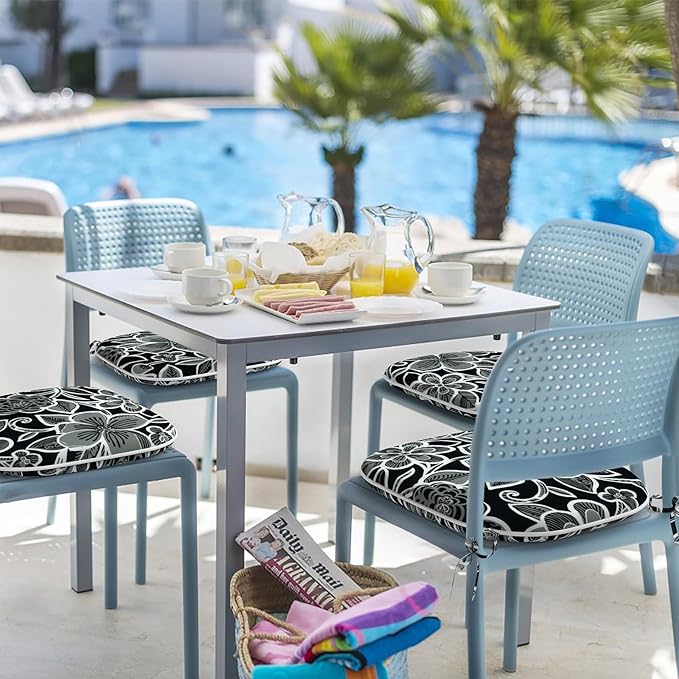 Indoor/Outdoor Chair Cushions 16x17 Inch, Patio Chair Cushions with Ties, All Weather Seat Cushions for Patio Furniture Home Garden Chair Use, Set of 4,Flower Black
