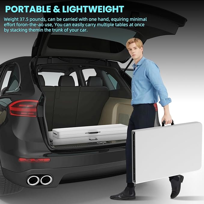 HLPB Folding Table Picnic Table, 8 ft Portable Camping Table with Handle and Safety Locks, Foldable Table Plastic Dining Table Indoor Outdoor for Camping, Picnic and Party
