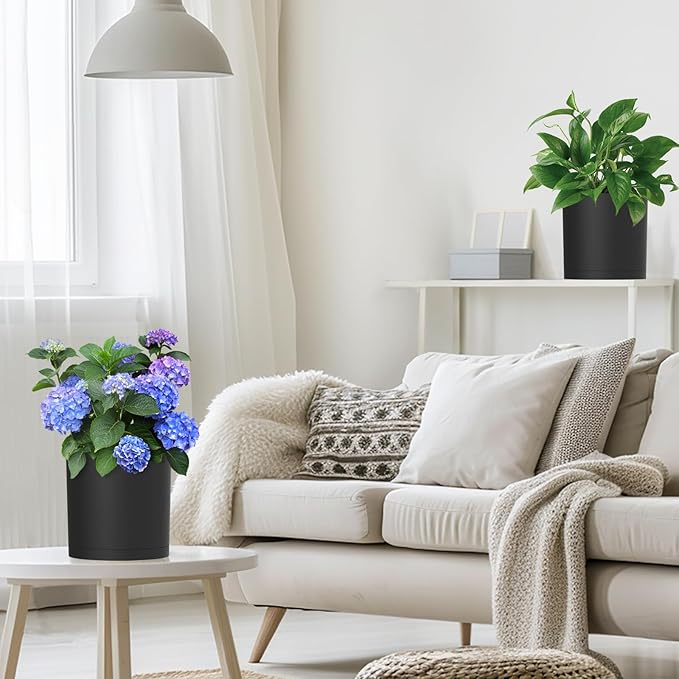 - 【Depth & Large】 8 inch indoor plant pot with Dia: 8 in, Height: 7.8 in, tall plant pots with black color provide enough space to accommodate a variety of plants, offering flexibility for small to medium-sized greenery and flowers