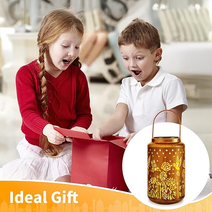 - Durable & Waterproof Hanging Lantern Lights: Crafted from good-quality metal, these hummingbird solar lanterns are designed to withstand rain, snow, and harsh outdoor conditions. With an IP44 waterproof rating, they built to last year-round in all weather, making them a reliable outdoor hanging lantern.