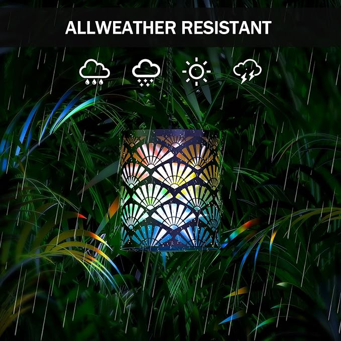 - 【Weather resistant and durable】Hanging solar lantern is made of high qulity durable metal.IP65 waterproof design.Whether faced with rain,snow or bad weather conditions,there is no need to worry about its performance will be affected.They have excellent durability and provide reliable lighting throughout the year.