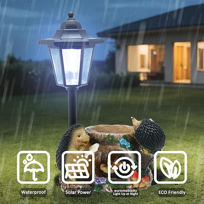 Solar Garden Outdoor Decor Statues Warm Hedgehog Family of Three with Light,Outside-Outdoor Decorations Sculptures for Patio Yard Lawn Walkway Ornaments Clearance Gifts for Mom Grandma Birthday
