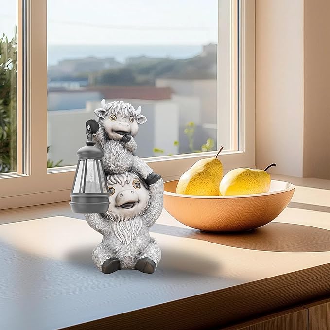 - Highland Cow Statues with Solar Lights, Highland Cow Resin Figurine Lights, Highland Cow Ornaments for Patio, Balcony, Indoor Decoration and as Gifts