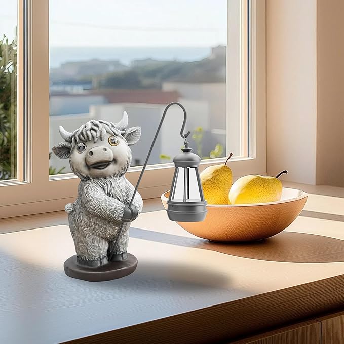 - Highland Cow Statues with Solar Lights, Highland Cow Resin Figurine Lights, Highland Cow Ornaments for Patio, Balcony, Indoor Decoration and as Gifts