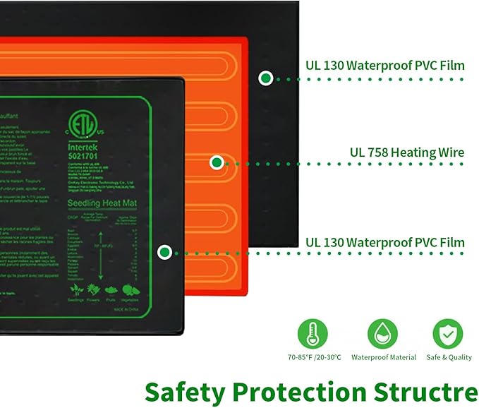 - ETL Safety Certified - Ruyyi Seedling Heat Mat with ETL listed,Conforms with UL 499, Conforme à la norme UL 499,CSA C22.2 No64