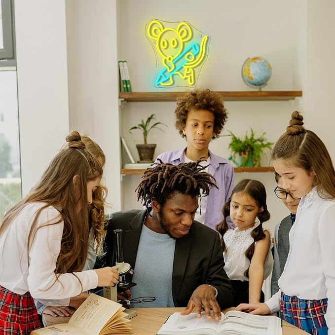 Pencil Mouse Neon Sign Yellow Led Neon Signs Classroom Neon Lights for Wall Decor Dimmable Light Up Sign for Classroom Bookstore Library Bookish Museum Teen Gifts (USB Powered 5V/2A)