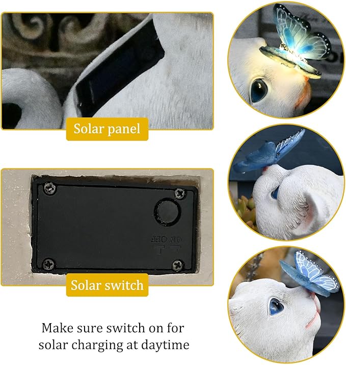 - ▶ Convenience - Cat solar light design will automatically charge and store energy during the daytime, only light up at night or in the dark automatically. You just push the OFF switch to ON for automatic activation at sundown.