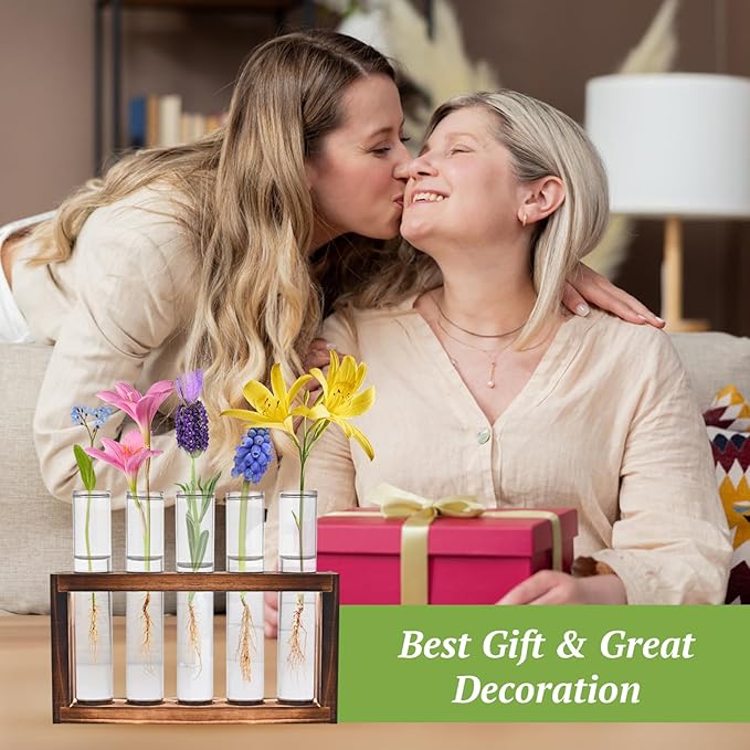 - 1. Natural and Odorless: Our vintage wooden stand and high boron silicon glass planter bulb vase are made from natural pine wood and odorless materials, ensuring a safe and healthy home decor solution.