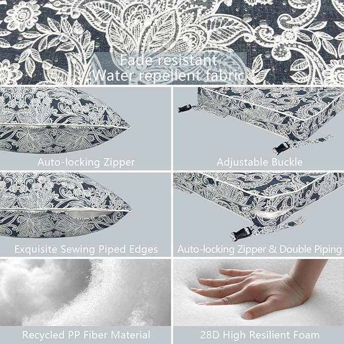 - ā¤ļøCare and Guarantee: Lightly spot clean or hand wash fabric with mild detergent and cool water; then let air dry. If you have any questions about our outdoor seat cushions, please feel free to contact us, your satisfaction is always our priority.