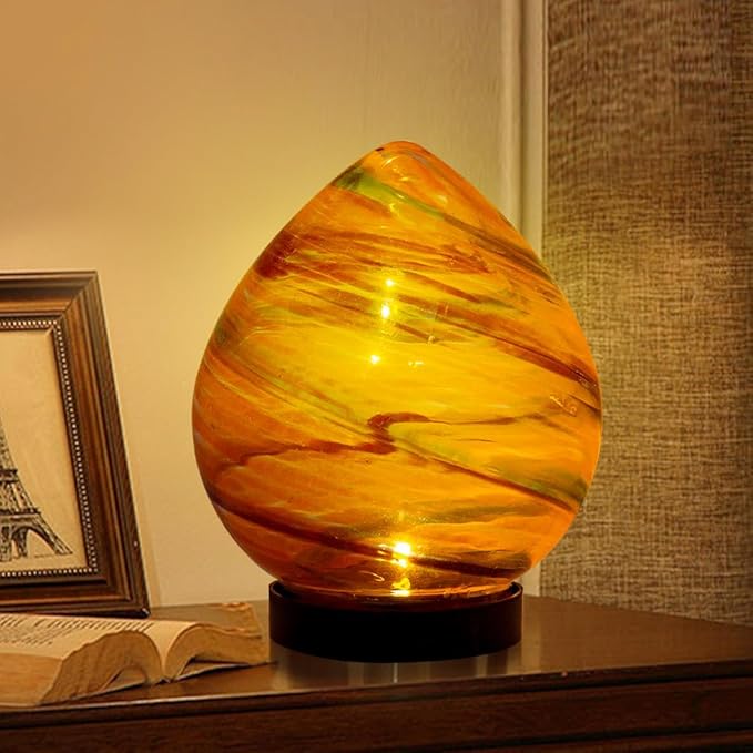 Table Solar Lanterns Outdoor Waterproof LED Desktop Decorative Lanterns 6.7" Glass Solar Globe Lights,Outdoor Garden Lights for Patio Porch Table Decor Gardening Gifts for Women(Orange)