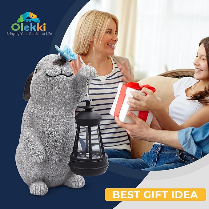 - đȘŽăADD CHARM TO YOU GARDENă Combining the playful appeal of a little bunny with the soothing glow of lantern lights, this lovely solar rabbit garden decor creates a dreamy ambiance for your garden, backyard, lawn or patio when lit at night. Perfect for enhancing your outdoor space!