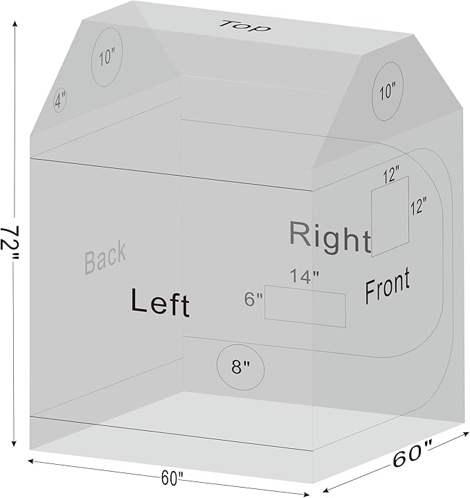 - Superior Materials and Sturdy Structure---- The grow tent is made of tear proof 600D canvas and double stitched to ensures the light blocking. Strong metal poles and solid PA corner connectors that will uphold your grow tent's frame and lock your structure securely in place. Ensure stable and heavy duty enough for durable & safety use.