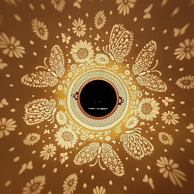 - Graceful Decorative Design - The retro appearance, with gold copper color and hollow out metal veneer, the solar outdoor lanterns casts bright and warm light in darkness, accompanied by gorgeous and graceful butterfly patterns, adding a beautiful atmosphere to the surrounding environment.
