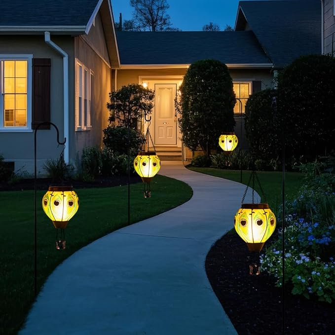 - 【Hanging Solar Light with Flickering Flame】The glass hot air balloon solar lantern with metal "S" hooks can be easily hung anywhere, such as balconies, porches, ledges or trees. The bright hot air balloon decorations during the day can add color to your outdoor space, and at night to add a warm and romantic atmosphere to your homeland.