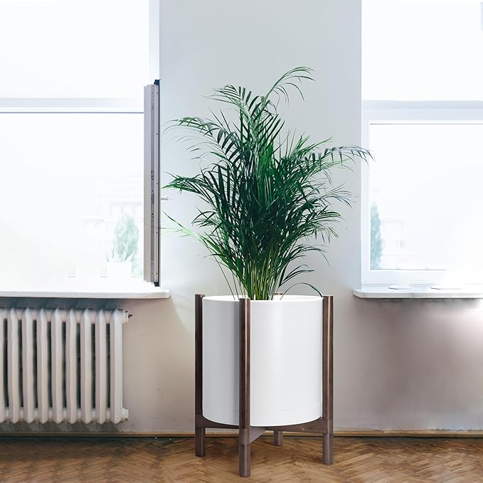 - A Complete Set: Minimalist plastic planter, combined with a sculptural, solid wood stand that match perfectly together and looks great in any home.