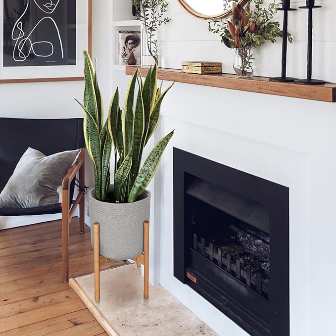- Wicker Plant Stand and Pot Cover: The storage bin has a natural and minimalist vibe to elevate your plant decor. It works as as both a woven planter and a plant stand, keeping your space tidy and clean. The grey neutral pot cover adds a touch of greenery and makes the room feel more inviting.