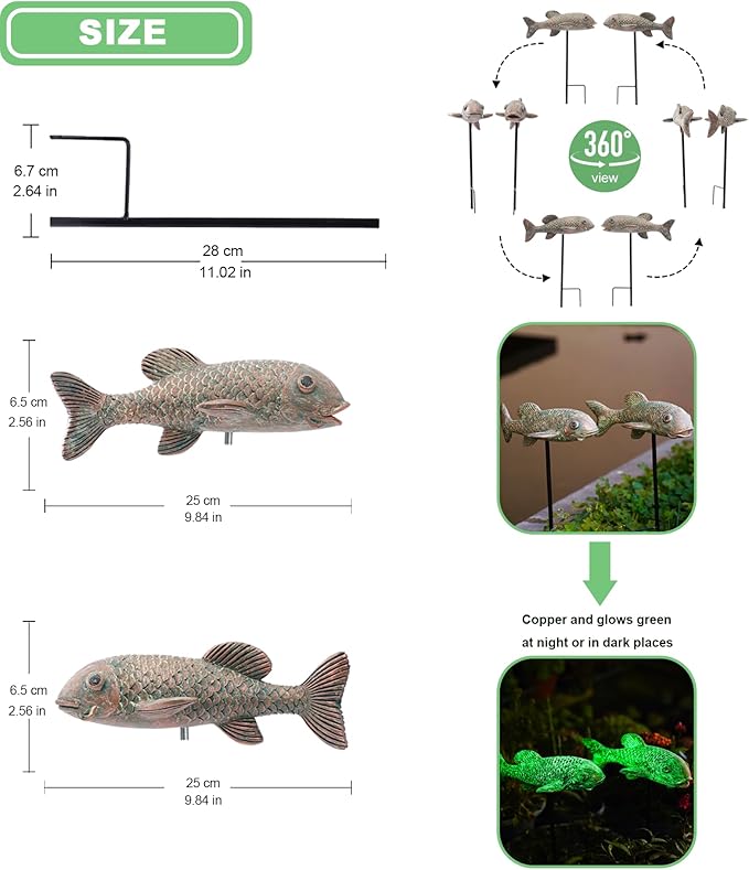 - Symbolic Meaning:Our fish statues represent good luck, prosperity and perseverance. They can inspire positive emotions and add significance to outdoor garden patio pond decorations