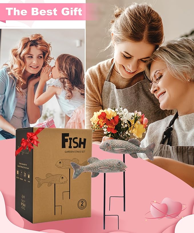 Outdoor Koi Fish Statues 2Pack: Garden Sculpture Ornaments Pond Decor for Yard Lawn Patio Porch Outside Decorative Gifts for Grandma Women Mom