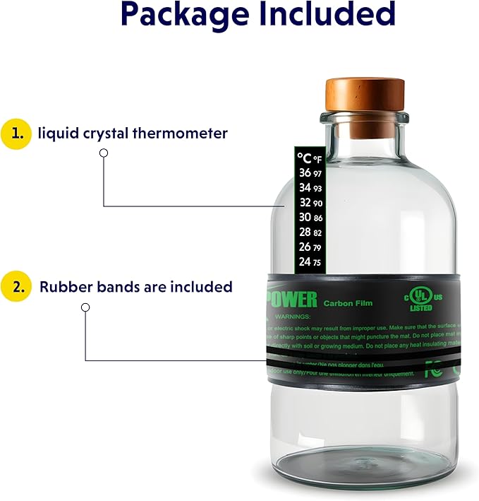 - Package Included: 1 pack 3'' x 20" seedling heat mat, two rubber band and a liquid crystal thermometer