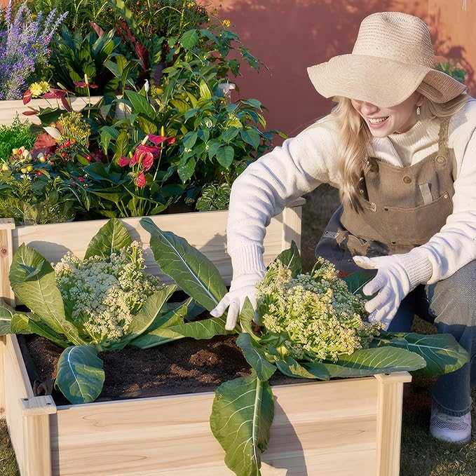 - Fir and Cedar Construction: Built with durable fir wood panels and sturdy cedar posts, this raised garden box combines natural aesthetics with long-lasting strength for your gardening needs.