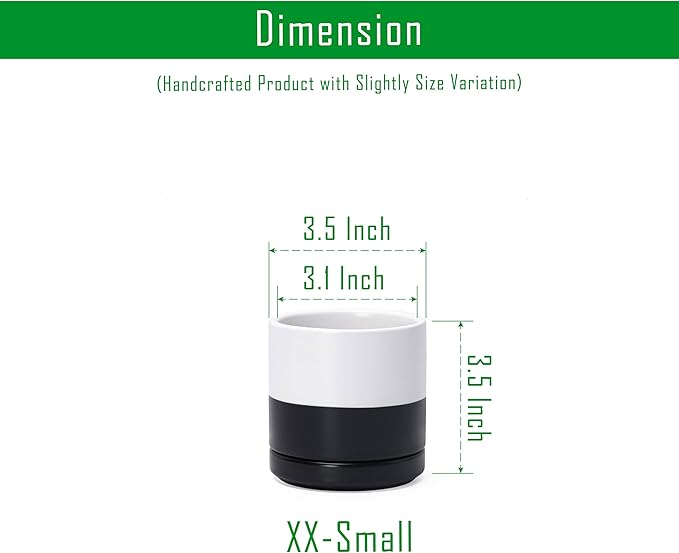 - Multiple Size Options: Available in six sizes (3.5" to 11.8") to fit plants of all types, from small succulents to larger houseplants. Small 3.6 Inch Planter Pot: 3.5" Diameter x 3.5" H, Potting Soil Needed: 0.11 gallons / 0.45 qt.