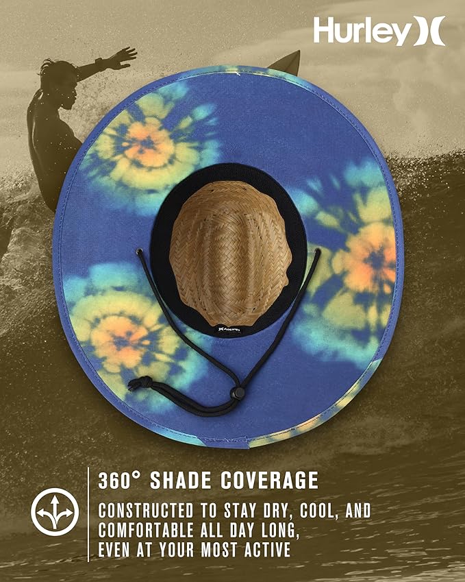 - SUN PROTECTION : Designed with a wide brim, this Hurley straw hat offers you ultimate sun protection. Keep your face, neck, and shoulders shaded from harmful UV rays during long days at the beach, on the boat, or by the pool. Whether you're wearing it for lifeguarding, fishing, or just soaking up some sun, this is the beach hat for men that ensures you stay cool, comfortable, and protected.