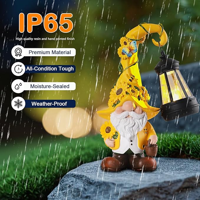 - Durable and Waterproof:Garden gnomes made from sturdy resin and finely carved,this lawn gnome is UV-resistant,heat-resistant,and retains its bright,lasting colors.It also has excellent waterproofing and weather resistance,unaffected by heavy rain or snow,making it perfect for both indoor and outdoor display.