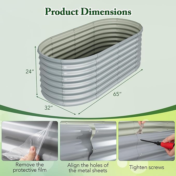 - 『Versatile Use』: This outdoor metal garden bed is ideal for cultivating flowers, herbs, succulents, vegetables, and fruits. You can freely select plants you like to dress up your colorful garden. Moreover, the unique oval shape and silver color make it a stylish decoration in your garden, backyard, green house, etc.