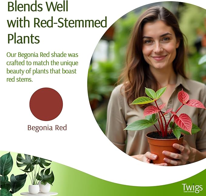 Twigs - Plant Support Stakes for Indoor, Outdoor & Climbing Plants, Gardening Supplies, Garden Accessories, Trellis & Ring Alternative, Made in USA - Begonia (Red), 10 Pack, 12" L, Mini Twigs