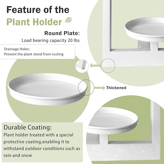 - 【Durable Metal Plant Frames】Plant wall shelf crafted from high-quality metal with exquisite finishing, rust and corrosion resistance, suitable for outdoor and indoor use,our plant frames wall decor not only provide sturdy support for your plants but alsoEnsure a stylish look. Round tray ensure stability and prevent plants from falling down.