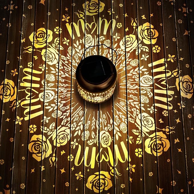 - Mothers Day Gifts for Women: The retro appearance, with gold copper color and hollow out metal veneer, the solar lantern casts bright and warm light in darkness, accompanied by gorgeous and graceful flowers roses and “Best Mom” patterns