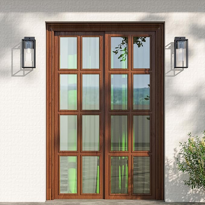 - 【Modern Outdoor Lights】Designed with clean lines and a classic matte black finish, this outdoor wall lights gives a simple yet elegant look, perfect for front doors, garages, porches, hallways, patios, and any other indoor or outdoor location.