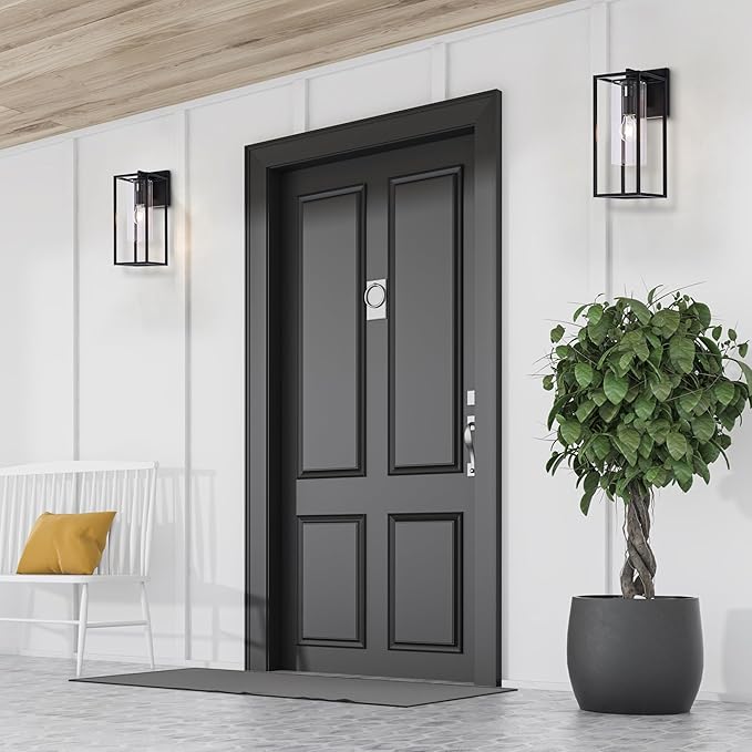 - 【Modern Outdoor Lights】Designed with clean lines and a classic matte black finish, this outdoor wall lights gives a simple yet elegant look, perfect for front doors, garages, porches, hallways, patios, and any other indoor or outdoor location.