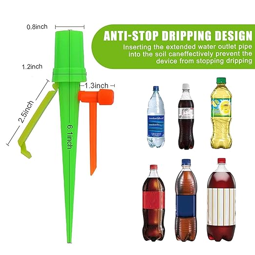 - New Version: Unlike other versions, The newly upgraded plant watering spikes have added anti stop dripping design. Inserting the extended water outlet pipe into the soil can effectively prevent the device from stopping dripping. As long as you adjust the drip rate you need before inserting the soil, Plant Watering spikes will water the plants for 2-15 days.